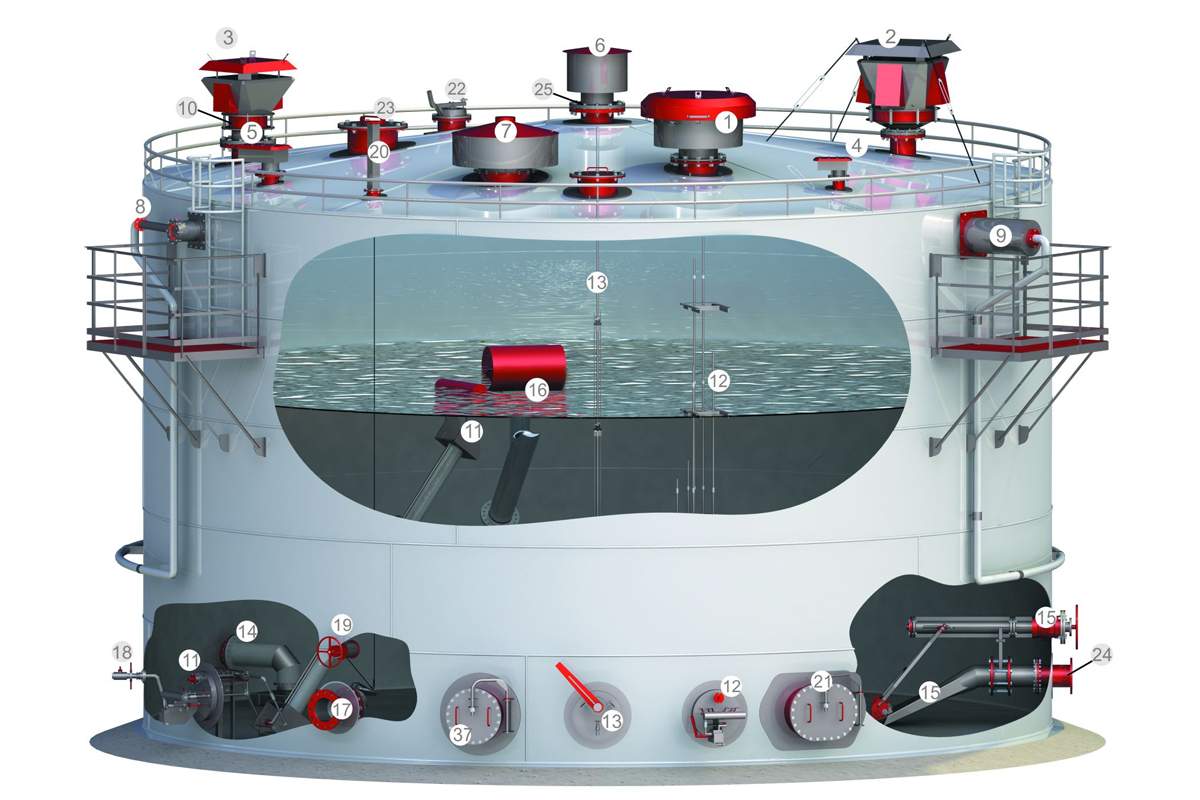 Высокотехнологичный и безопасный резервуар представляет собой комплексное инженерное устройство. Предъявляемые к нему требования направлены на обеспечение защиты, надежного сохранения веществ, длительную эксплуатацию. Для их выполнения предназначено резервуарное оборудование, которое подразделяется на группы: